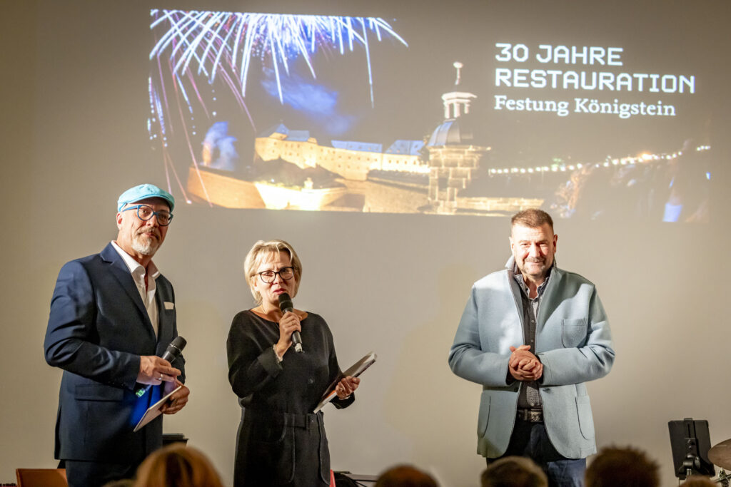 Während der Jubileumsveranstaltung zu 30 Jahre Restauration Festung Königstein übergab unser BI-Sprecher der Ministerin für Kultur und Tourismus für Sachsen, Barabara Klepsch den Flyer unserer Bürgerinitiative zur Rettung der Pehna, mit der Bitte sich wenn möglich der Sache anzunehmen.