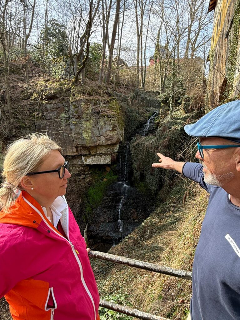 Sehr erstaunt zeigte Sie sich auch über die üppige Flora und Fauna im Dunstbereich des Wasserfalls. „Eine solche über Jahrhunderte natürlich gewachsene Oase in Symbiose mit dem technischen Denkmal der Obermühle sollte in dieser Konstellation unbedingt erhalten bleiben.“ so Sandra Gockel.